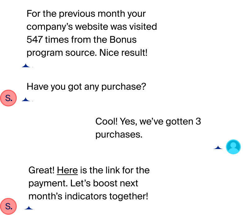 We need no prepayments to set your company as a participant of our Bonus program and you won’t pay until the leads take key actions.