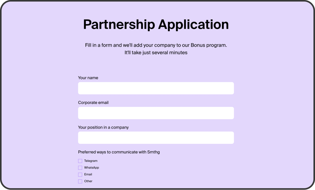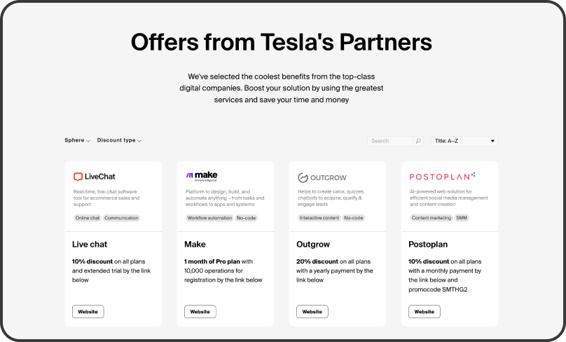 We’re developing an advanced affiliate program beneficial for all parties. Just issue a discount for the end-users and your offer will be promoted organically among dozens of companies without your participation.